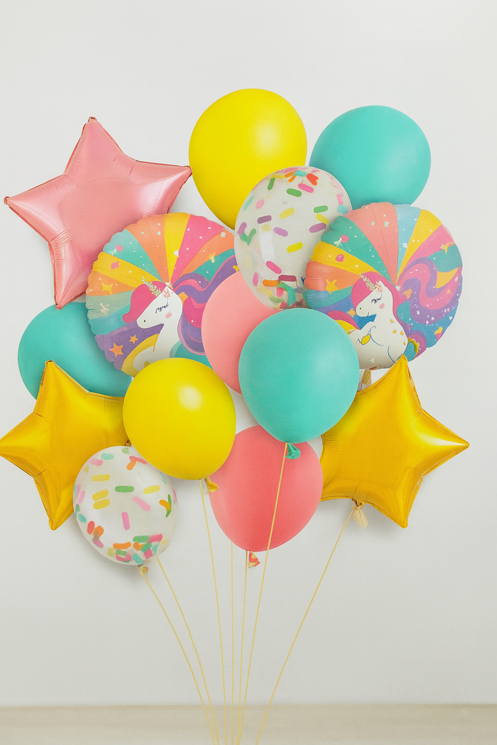 - Premium unicorn theme balloon bouquet in pastel colors