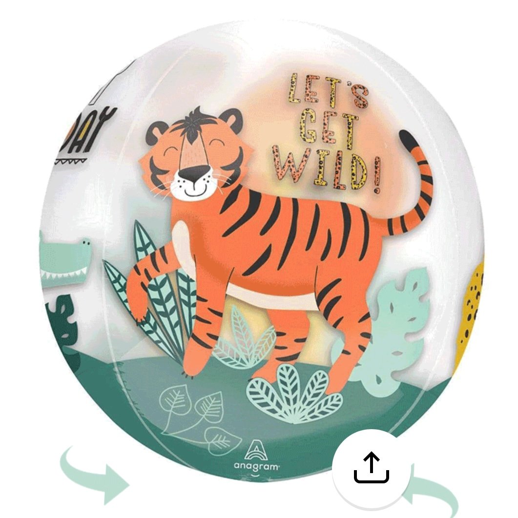 tiger balloon, orbz 4D tiger balloon, jungle theme decoration, safari balloon, animal party supplies, kids birthday jungle balloons