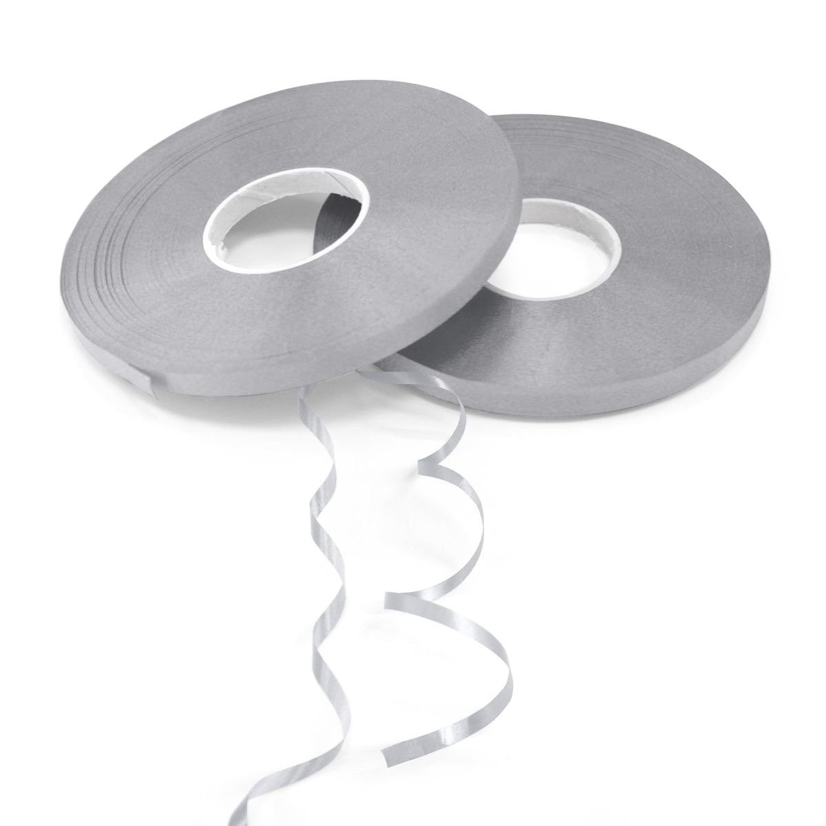 curling balloon ribbon silver, metallic silver ribbon for balloons, balloon tying ribbon silver, party decoration ribbon silver, silver curling ribbon roll, gift wrapping ribbon silver