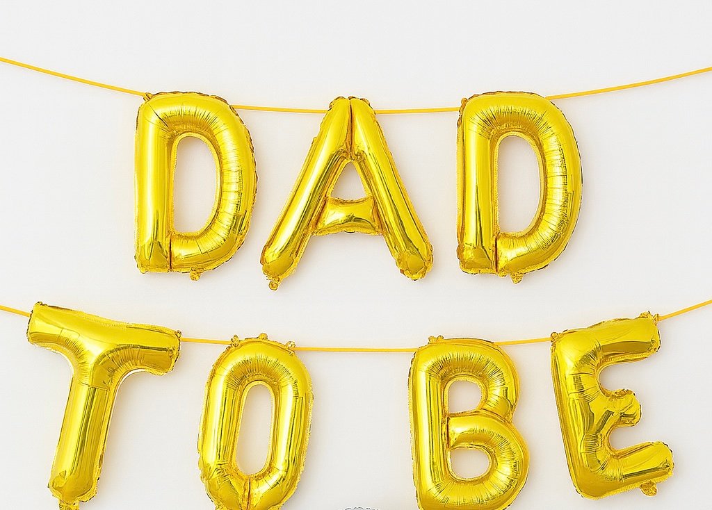 - Shiny foil letter balloons spelling “DAD TO BE”