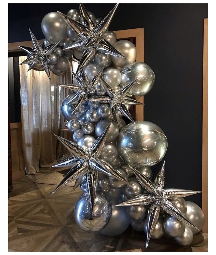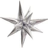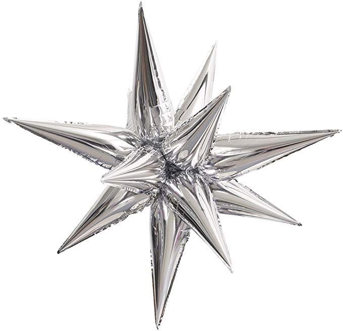 silver star foil balloon, 5D foil balloon, exploding star balloon, metallic silver party balloon, luxury starburst balloon, wedding anniversary decoration, festive décor balloon