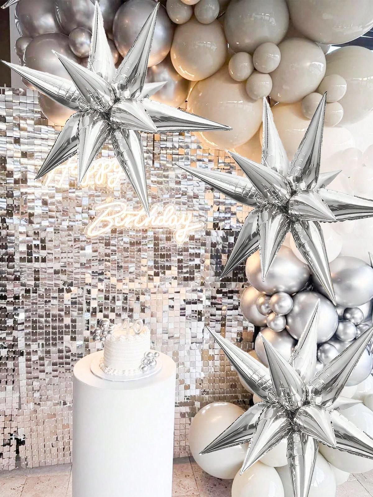 Shiny Exploding 5D Silver Star Foil Balloon – reusable, durable & stylish. Perfect for birthdays, weddings, anniversaries & festive decorations.