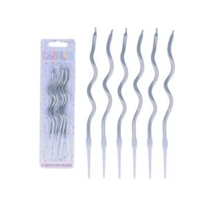 Silver Wavy Metallic Birthday Candles – Set of 6 | Elegant Cake Decoration Candles for Birthday & Celebration | Metallic Spiral Wavy Candles | Party Decoration Items